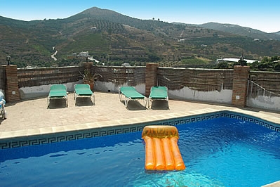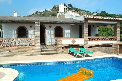 Deze vrijstaande villa ligt tegen een heuvelrug en is omringd door een avocado boomgaard. Van hieruit heeft u een adembenemend uitzicht over het gebied rond Frigiliana, dat 6 kilometer hiervandaan ligt, tot aan de Middellandse Zee. Op het schaduwrijke terras, aan de voorkant van de villa, is het plezierig buiten eten terwijl u uitkijkt over het zwembad met terras. Een stenen barbecue staat tot uw beschikking. Rond het uitnodigende zwembad van 6 x 4 meter lang en 1.65 - 2.3 meter diep, vindt u een op het zuiden liggend zonneterras met ligstoelen. Mocht u desondanks toch de behoefte voelen om de omgeving te verkennen: het gemoedelijke dorp Frigiliana en de prachtige stad Nerja liggen in de buurt.