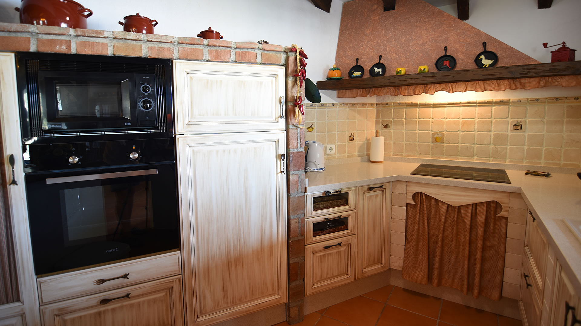 Con tan solo entrar en la residencia, se sentirá como en casa. El propietario ha decorado el alojamiento con un gusto excelente, al tÃpico estilo rústico español, empleando azulejos de la zona y vigas de madera a lo largo de sus techos. La puerta principal nos conduce a un espacioso salón-comedor. En el área del salón encontramos una estufa de leña, dos sofás de tres plazas uno frente al otro, televisión plana con conexión vÃa satélite y equipo de música. La zona de comedor está convenientemente situada cerca de la cocina y ofrece un acogedor rincón para seis personas. La cocina, aunque en estilo rústico, es moderna y está completamente equipada con vitrocerámica, horno, microondas, frigorÃfico combi, lavadora y lavaplatos. Hay tres dormitorios (Dos dobles y uno triple con camas individuales), cuarto de baño completo y baño con ducha. Hay un aparato de aire acondicionado (frÃo / calor) en la sala de estar y otro en el rellano que acondiciona los 3 dormitorios si se dejan las puertas abiertas.Notas:- Los precios son válidos para una ocupación de 6 personas. Se aplica un suplemento de 15 ⬠por noche para la 7ª persona. - Dispone de conexión a Internet WiFi (gratuito).