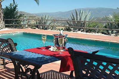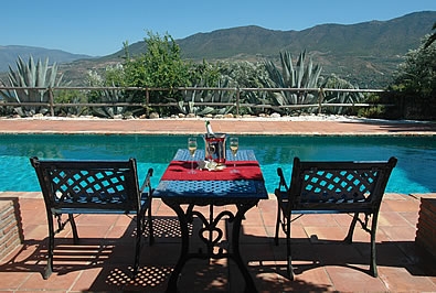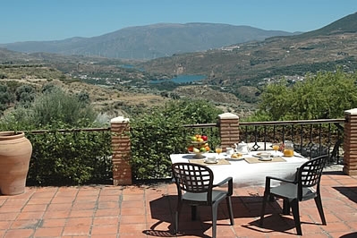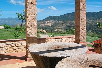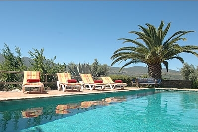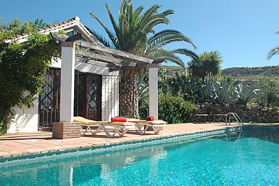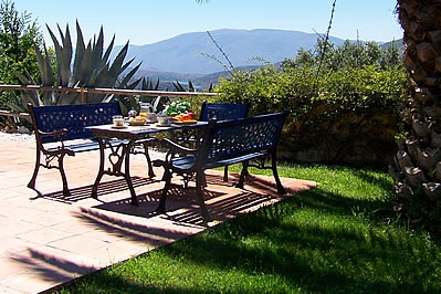 Das Haus befindet sich an einem wunderschönen und idyllischen Ort, von dem man einen GroÃteil des Tals überschauen kann. Es liegt an einem betonierten Weg, dem Camino de la Cuesta, der einst als HauptverbindungsstraÃe zwischen Granada und der Küste diente und ca. 1.5 Km von der HauptstraÃe entfernt entlang führt. Das Feriendomizil ist eine Finca, die von Feldern mit biologischem Anbau umgeben ist und mit Zitrusgewächsen, Mandeln und Oliven auf Sie wartet. Treten Sie doch einfach einen Schritt vor Ihre Küche und pflücken Sie Ihre eigenen Orangen und Zitronen, die Sie dann bei einem Frühstück an dem antiken Mühlsteintisch genieÃen! Der AuÃenbereich der Villa ist weitläufig und ansprechend gestaltet. Auch die Gärten mit den groÃen Rasenflächen sind wunderschön, farbenfroh und werden stets gepflegt. Zur Poolterrasse führt eine Treppe hinunter, wo sich auch das zum groÃen Swimmingpool gehörende Gartenhaus samt Kühlschrank und genügend Gartenmobiliar befindet. Das Haus verfügt über eine eigene Wasserversorgung und erzeugt zudem seine eigene Elektrizität. Aufgrund dessen könnte es bei dem Gebrauch elektrischer Geräte zu zumutbaren Einschränkungen kommen. Der Eigentümer hat kürzlich einen Platz für "Paddle Tennis" erbaut (Mischung aus Tennis und Squash) - dieser kann von den Mietern gegen einen kleinen Aufpreis genutzt werden.