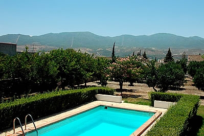 From the street, the house seems well integrated in the village, but once you get inside, it gives you the impression of being out on the countryside. The backdoor leads out to a terrace with stairs from where the attractive pool (8x5m), the garden and the extensive orange groves are accessed. The situation is ideal for those who like to avoid driving too much during their holiday, as the shops and restaurants of Melegis are really nearby. Also, this is a favourite spot for people who which to combine a ski and beach holiday during the winter season: the Sierra Nevada ski station is on 65 km away from here whilst the beaches of Salobreña (39km) are to be reached within half an hour. The city of Granada (37km) is also a half hour drive and not to be missed for a cultural visit or tapa-tour.