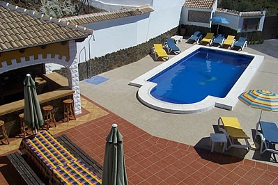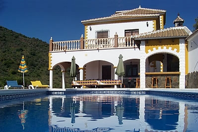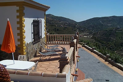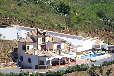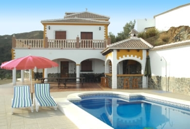 This spacious villa has a peaceful countryside situation, just north of Sayalonga (1,5 kms), a five-minute drive, and a traditional village of the Axarquia region. Here you'll find restaurants, tapabars and a supermarket. The beaches of Algarrabo Costa (10 km) are an easy fifteen-minute drive to the coast. The outside areas includes a private swimming pool with sun loungers and umbrellas. The pool bar with barbecue is ideal place for entertaining the guests whilst a shaded veranda is perfect for a siesta at midday or an alfresco dinner. The area invites walkers and bikers to explore its' beautiful landscapes in the Montes de Málaga and the Sierra de Tejada y Almijara where mountain climbing is another possibility for an active holiday. For those who prefer to discover villages where time seems to stand still we can recommend to drive along the different villages in the area such as Competa, famous for its' sweet Moscatel wine. At a half hour drive you'll be able to visit the natural hot springs of Alhama de Granada, the Picasso museum in Malaga, the Nerja caves, or, or... you'll run short of time if you'd like to see it all!