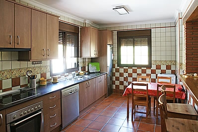 This villa sleeps up to 8 persons in 3 bedrooms and offers spacious accommodations (150m2). All rooms are on the ground floor except the master bedroom located on the first floor. The villa has a comfortable lounge/dining room with patio doors opening onto a dining terrace. The lounge has two comfortable sofas, satellite TV (mainly Spanish and French channels), and a CD and DVD player. The kitchen, very spacious as well, is separated from the lounge by a breakfast bar. It is well equipped with a 4 ringed vitro hob, an electric oven, a microwave, a dishwasher, a fridge/freezer and a washing machine. There are 2 double bedrooms and a triple bedroom with the possibility of sleeping a fourth person on the sofa bed, making this a villa where 8 persons can be comfortably accommodated. There is one shower room and one full bath room.