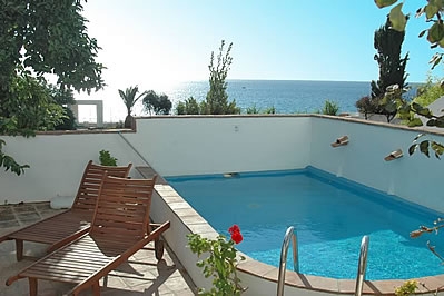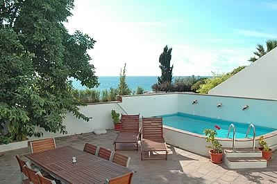 The house is divided over two floors, with simple and friendly furnishing, in a traditional style with Spanish floor tiles. On the ground floor, youâll find a lounge with dining facilities and open fireplace. The kitchen is independent and equipped with ceramic hob, oven, microwave, refrigerator/freezer and washing machine. There is a double bedroom, a single bedroom with an extra drawer bed and a full bathroom with an over bath shower, WC, bidet and basin. On the first floor there is a second lounge with sitting area from where traditional doors open onto a lovely terrace with sea-views. Youâll find two twin bedrooms on this floor and a full bathroom with an over bath shower, WC, bidet and basin.