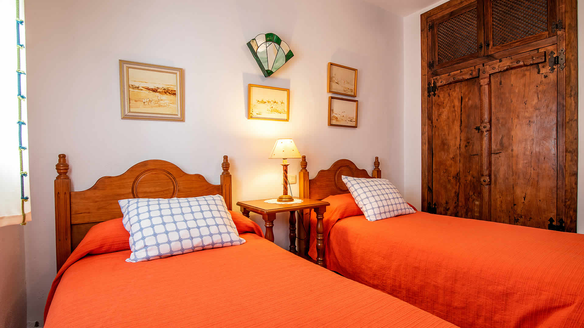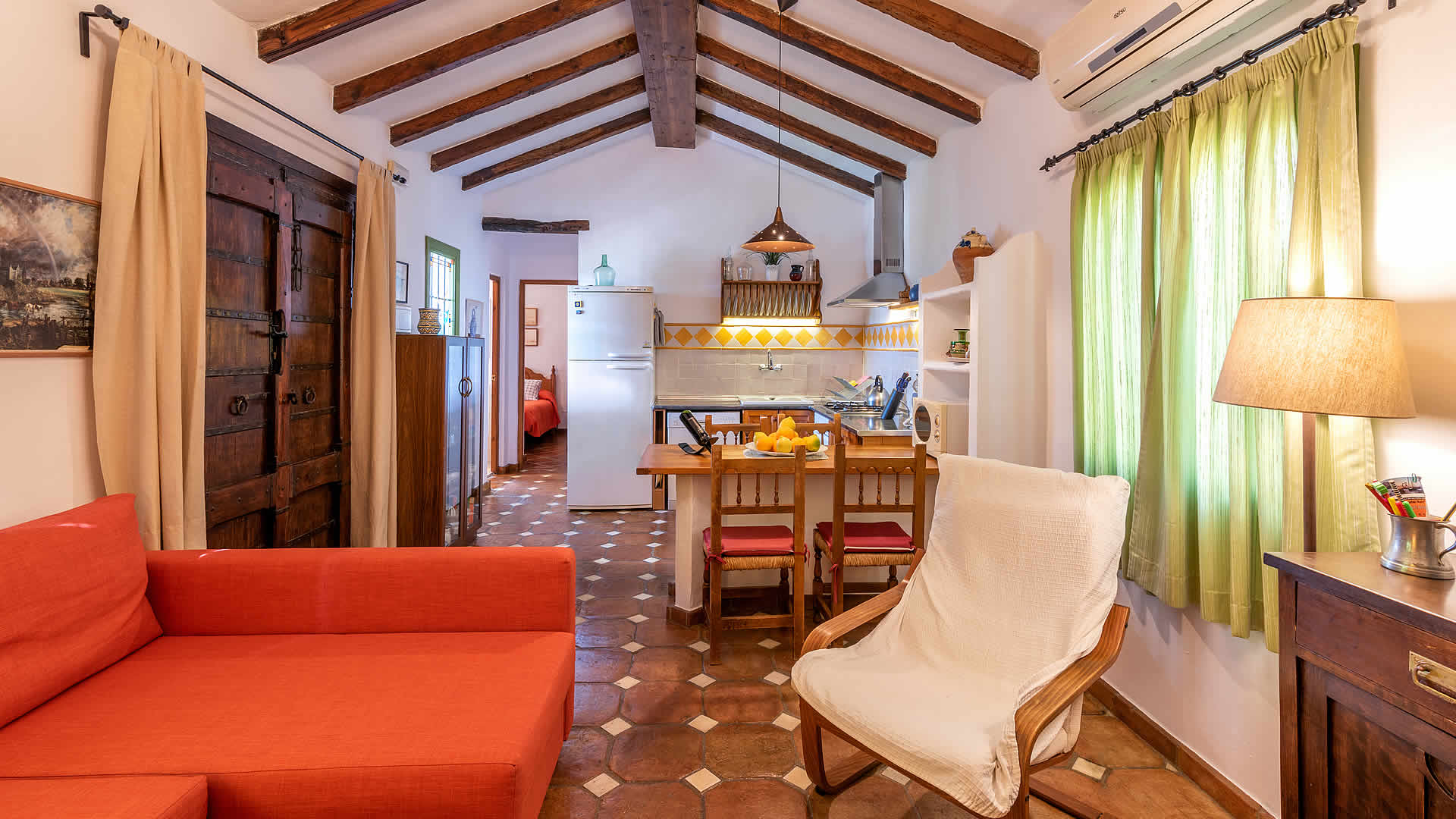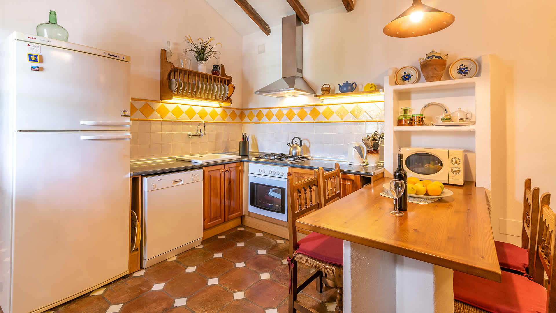 La casita está decorada en un encantador estilo tradicional por sus simpáticos propietarios, Javier y Rosario. La han equipado con todas las facilidades que ellos mismos desearÃan encontrar durante sus vacaciones. ¡Se sentirá como en casa! Con todas las habitaciones en una sola planta, es sin duda un retiro muy cómodo. La sala de estar-comedor cuenta con chimenea, televisión por satélite, reproductor de CD y DVD y aire acondicionado. La cocina abierta está equipada con cocina a gas de 4 fuegos, horno, frigorÃfico combi y lavavajillas. Hay lavadora situada en el cuarto lavadero. Los dormitorios están compuestos por uno de matrimonio y otro doble con dos camas individuales, ambos con ventiladores. También hay un aseo con WC y lavabo.Notas:- Dispone de conexión a Internet WiFi (gratuito).- Dispone de aire acondicionado en el salón; es opcional y el coste es de 50 ⬠por semana.