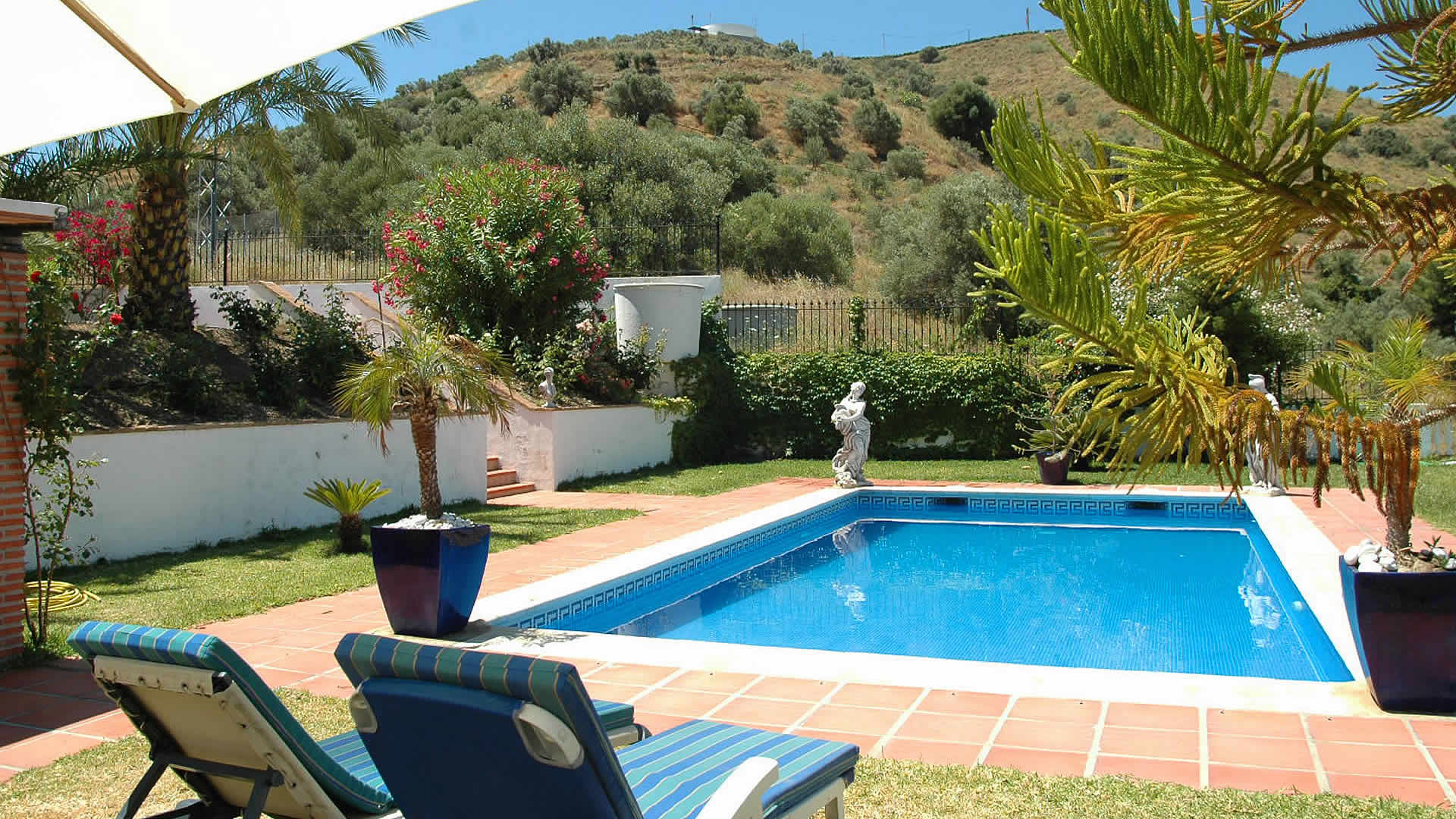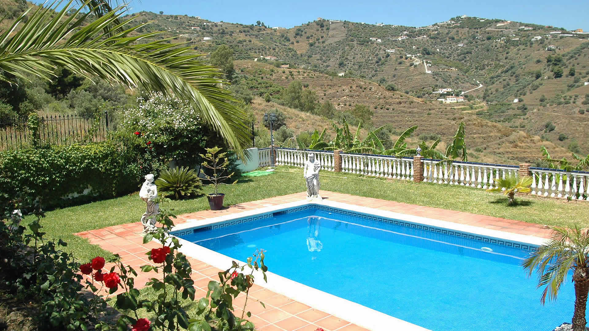 Majestueusement située sur le haut d’une colline, cette villa paisible se trouve à 20 minutes en voiture des plages de Nerja (9 km) et un peu moins de Frigiliana (6 km). De la piscine, profitez de la vue magnifique sur la campagne environnante ou laissez-vous aller en rêves avec un bon livre, reposez-vous au soleil et libérez-vous du stress quotidien. La villa est entourée d’oliveraies et offre un emplacement rural retiré. On y accède par un chemin en béton de 5 km avec des sections non revêtues. C’est le lieu idéal où passer l’été en famille ou entre ami/es. Les repas peuvent être pris à l’extérieur sur la terrasse accessible depuis le salon. L’attrayante piscine privée (10x4 m) est entourée d’un grand jardin avec pelouse et d’un coin pour le barbecue. Son emplacement est idéal pour les adeptes de la randonnée; le trajet de plusieurs promenades dans le secteur se trouve facilement sur Internet. Pour une baignade dans l’océan, les belles plages de Nerja vous attendent.