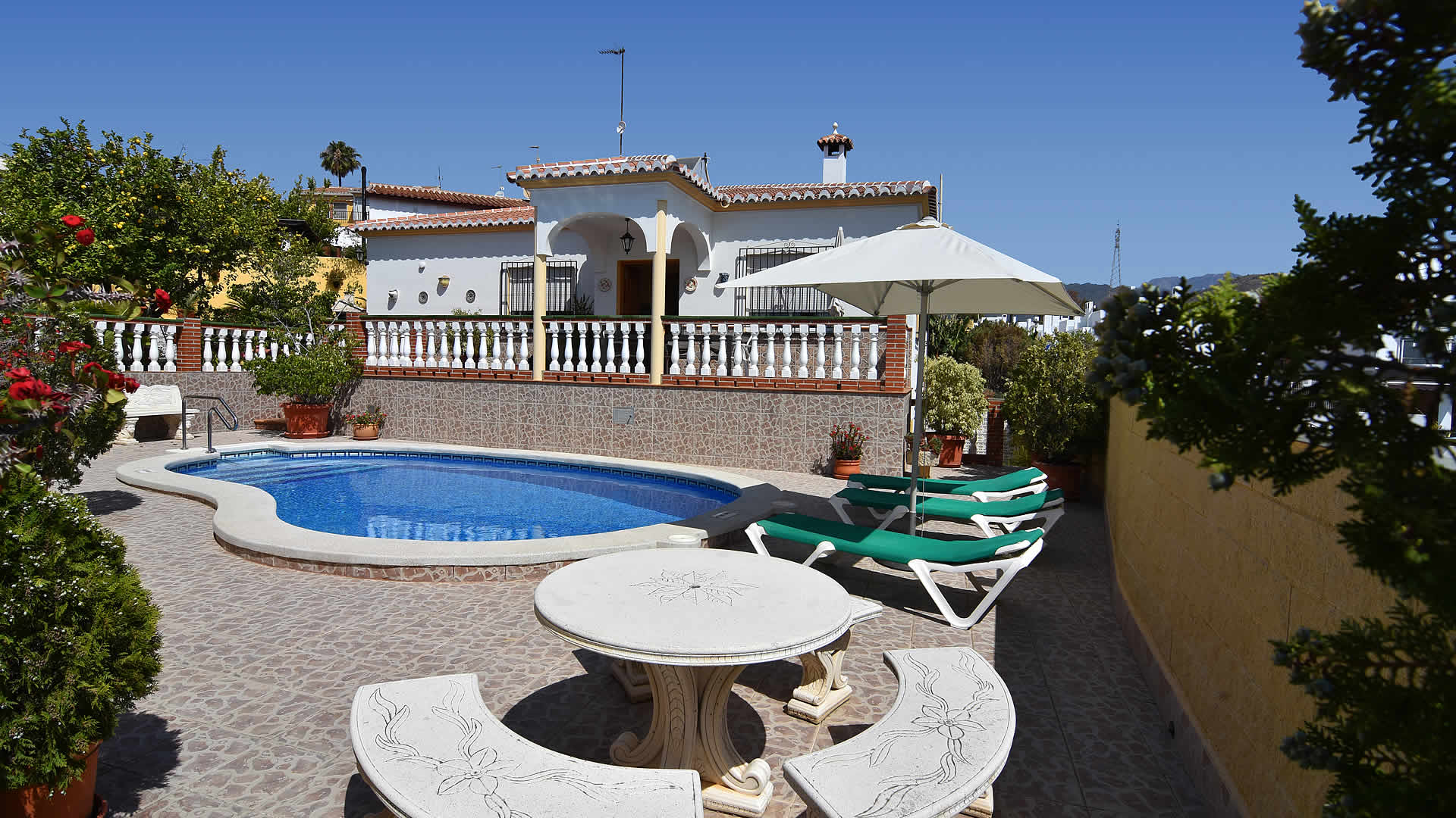 In the front of the house you'll find a lovely verandah with views out to Nerja and the Mediterraneanâthe ideal spot for a nice breakfast or an alfresco dinner. A few steps lead down to the sun terrace and the private pool (7m x 4m and 1.25m - 1.95m deep) with sun loungers. Adjacent to the house is a pretty garden with many plants, flowers, and citrus trees, together with a barbecue corner. For sightseeing, we would recommend exploring the area on foot, as this is a walkers' paradise. By car, the pretty white villages of the Axarquia and historic Granada are just a few of the excursions to be enjoyed. The villa has a private parking for one car.