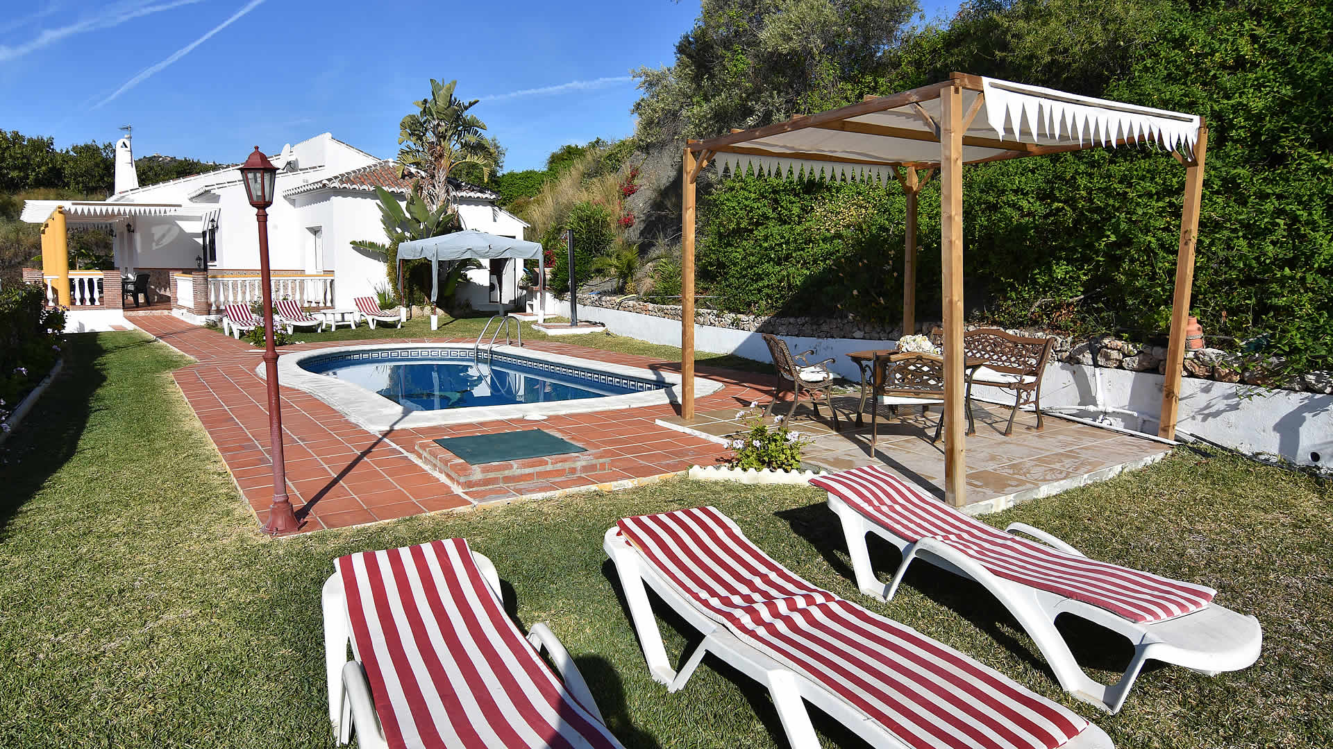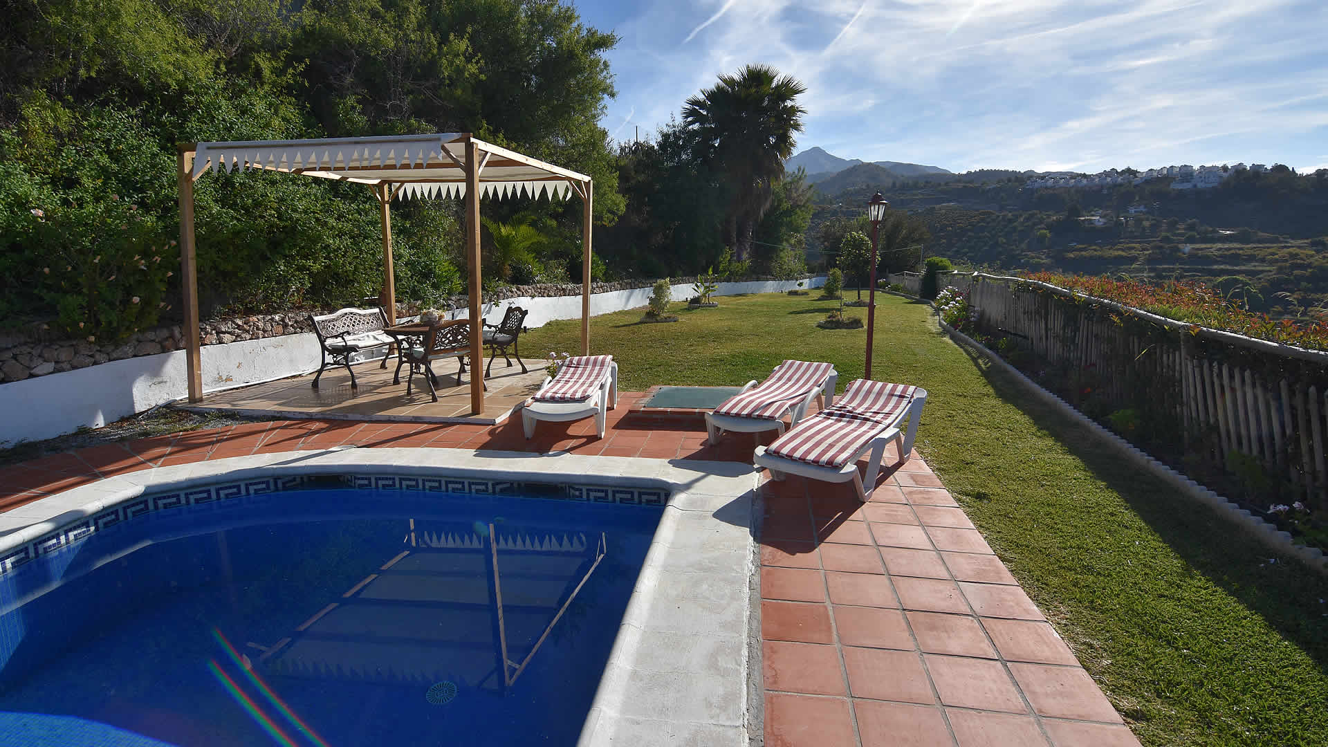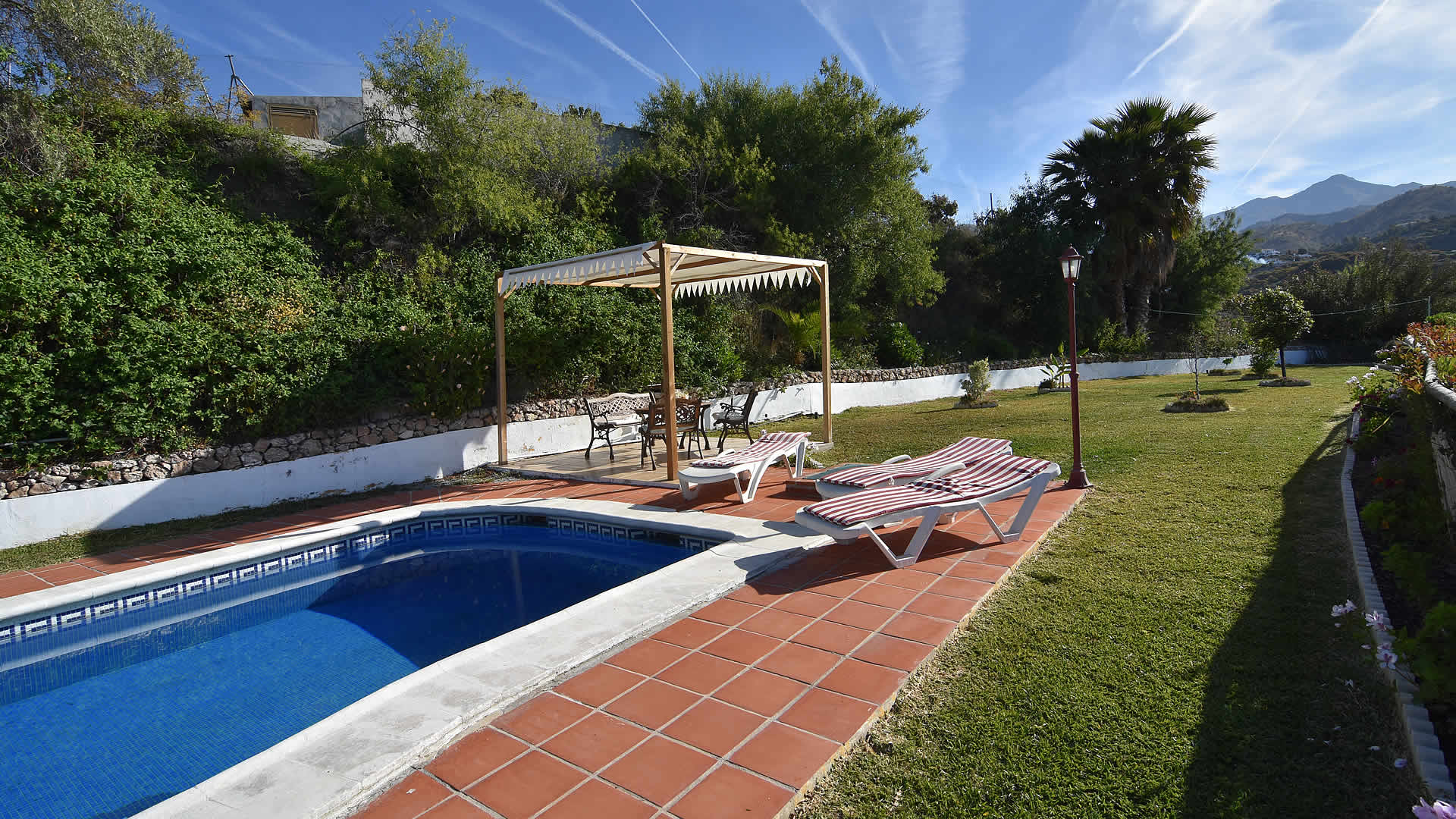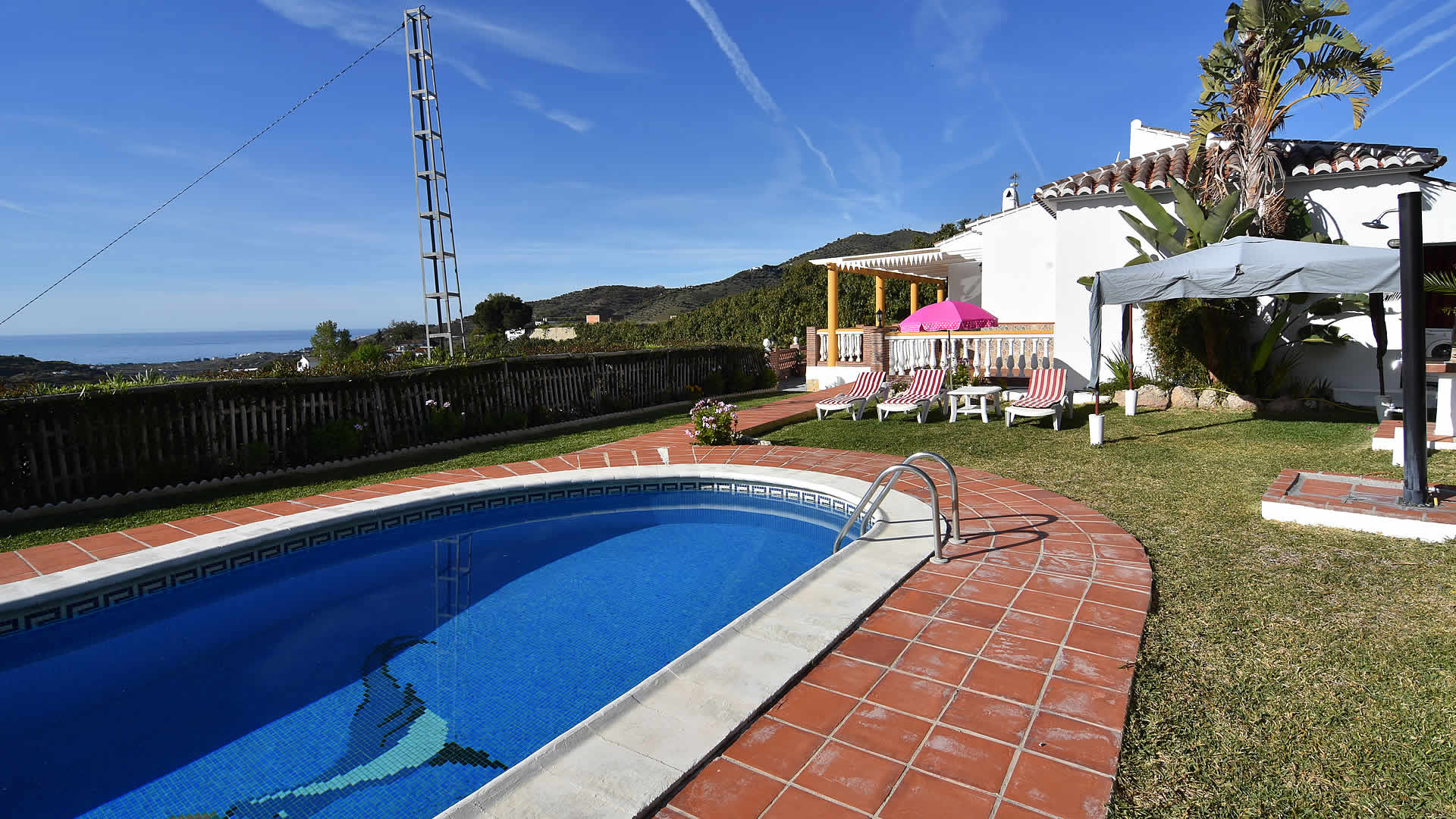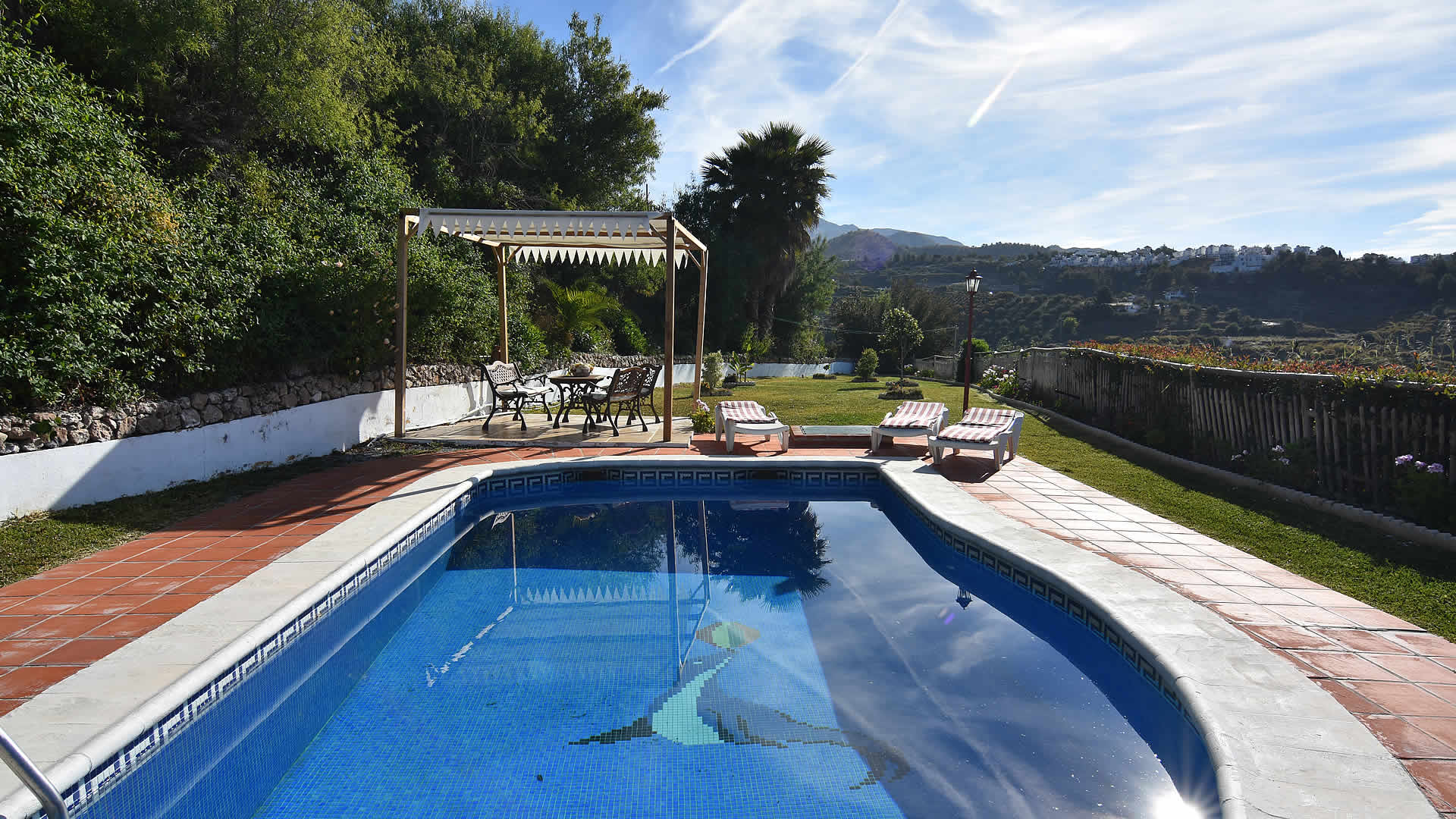 We have just returned from 9 days at this villa during October half term. It is in a stunning, quite remote, location, away from it all, yet within a short drive to Nerja and Frigliana. It is situated on the top of a hill, with absolutely beautiful views down to the sea and up to the mountains. The villa feels very spacious and the pool is lovely. The agency was incredibly helpful during our stay, including meeting us at 10 at night so we could drive behind him to show us to the villa and give us the keys. You should be aware that it only has a hob, not an oven, but there is a BBQ so this was not an issue for us. The only slight downside for us is that it could do with some more shaded areas outside, but other than that all in all an absolutely great place to stay.