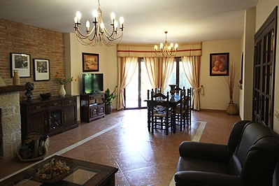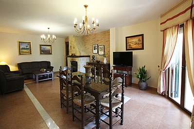 Die Räume dieses Feriendomizils sind hochwertig und auÃerordentlich geschmackvoll von den Eigentümern eingerichtet worden. Die Räume beider Wohnungen liegen allesamt auf einer Etage. Die Unterkunft mit den 2 Schlafzimmern befindet sich in dem oberen Stockwerk und ist mit der anderen Wohnung durch das zuvor erwähnte Treppenhaus verbunden. Die traditionell rustikalen Elemente wie Natursteine, antiker Mauerstein und die Holzbalken wurden in einem Zusammenspiel von andalusischen Farben und regionalen Materialien mit viel Auge fürs Detail verwendet. Die Wohn-/ Essbereiche verfügen über 2 Sofas, einen offenen Kamin, TV sowie DVD-Spieler. In den gut ausgestatteten Küchen finden Sie einen Keramikherd, Ofen, Mikrowelle, Kühl-/ Gefrierschrank, Waschmaschine und Geschirrspüler. Die Wohnung mit 3 Schlafzimmern umfasst ein Doppelschlafzimmer sowie zwei weitere mit je zwei Einzelbetten und in der zweiten Wohnung stehen Ihnen ein Doppelzimmer und ein weiteres mit 2 Einzelbetten zur Verfügung. Alle Schlafzimmer wurden sehr elegant eingerichtet. Jede Wohnung bietet Ihnen zwei vollständig ausgestattete Badezimmer.Bitte beobachten Sie: Das Haus verfügt über eine WIFI-Internetverbindung, die ohne Mehrkosten genutzt werden kann.