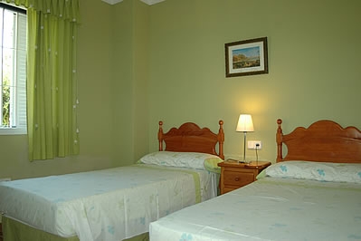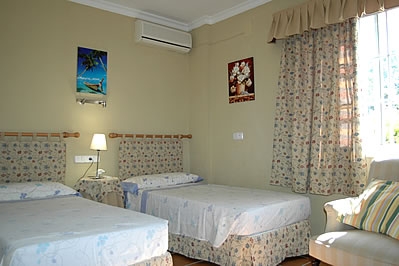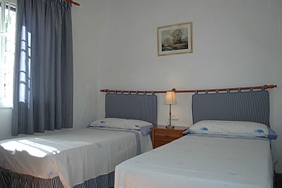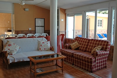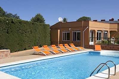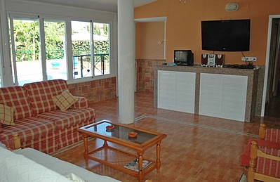 The rooms are set on two levels and decorated with taste and comfort by its owners. The entrance hall on the ground floor leads into the living/dining room equipped with 2 sofas, television, DVD, and air conditioning. A large second living/dining room with sofas, dining table, and TV offers additional space and looks out to the pool area. The independent kitchen is equipped with a dishwasher, microwave, electric oven, vitro hob, and refrigerator/freezer. On the ground floor you'll find 5 twin bedrooms and 1 double. One of the twin bedrooms can sleep 4 persons by adding bunk beds. There are two complete bath/shower rooms. The windows of two of the bedrooms look onto the large dining room.