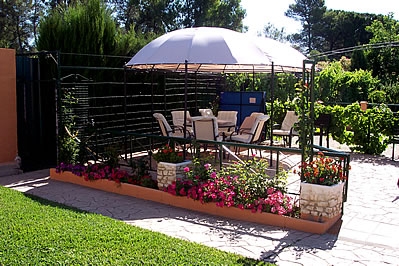 Only 26 km from the sherry-capital Jerez de la Frontera, we found this beautiful villa located in a residential area called El Chaparrito, and set on beautiful grounds with more than 2,000 m2 of enclosed gardens, flowers, and fruit trees. The place is peaceful and tranquil and provided with a spacious garden with lawn, a fountain, and a tempting private pool (8x4 m). The outside area also includes a covered terrace, a great spot to enjoy your alfresco dinners. Adjacent to the pool area, youâll find a comfortable garden kitchen and a bathroom/changing room so that you donât need to walk in and out of the house all the time. The kitchen is equipped with a 4 ringed gas hob, a barbecue, and an electric paella pan. Patio furniture and sun loungers are provided. At the front of the house is a spacious parking lot. For those who want to discover Andalusia, the antique city of Arcos de la Frontera is only 17 km away and is the first town to visit on the road of the famous White Villages. Nature lovers will like the Natural Parks of Grazalema and LOS Alcornocales. Jerez de la Frontera is known as the place of origin of the flamenco dance and offers visits to its wine cellars and a famous horse show (on Thursdays). The golden beaches of the Cádiz province are just a 45 minute drive away whilst simple shopping and restaurants are available in the nearby villages of San José del Valle or La Barca de la Florida, both at a 5 minute drive. You will also find fantastic golf courses 30 minutes away.