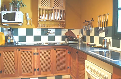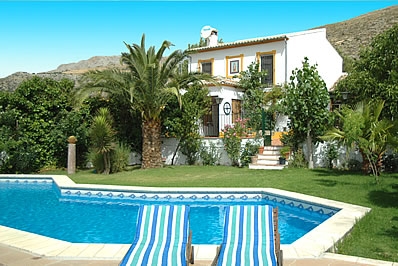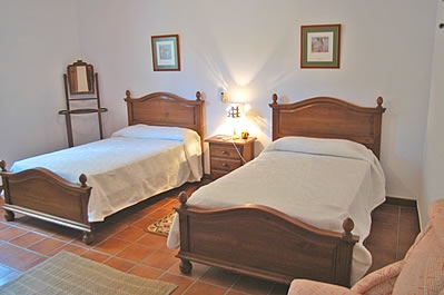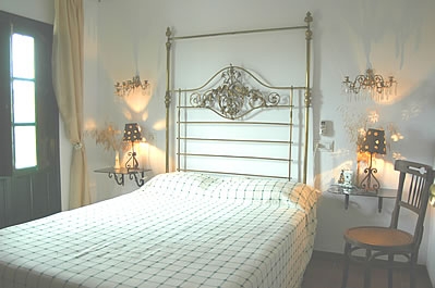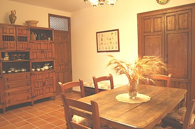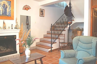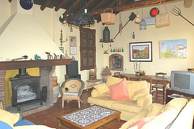 The villa has been decorated with good taste by its' owners using comfortable furniture and a rustic Andalucian style decoration. The three bedrooms and a full bathroom on the first floor. On the ground floor you'll find a spacious living room with 3 sofas, a large fireplace, satellite TV and DVD. On entering the villa, the large entrance way leads right into the main lounge area. The beamed and wooden ceiling together with the traditional ornaments emphasize the countryside-feeling of the property. The kitchen is provided with a vitro hob, fridge/freezer, microwave, oven, dishwasher and has everything you will need for cooking during your holiday. A washing machine and iron board with iron are found in the utility room. Adjacent to the living room is a separate dining room with a dining table for 6. On your way to the bedrooms, you will find a relaxing lounge/library with two comfortable chairs around another open fireplace, a perfect reading corner. Just off this lounge area is a very unusual feature, here there can be found a fully equipped old style Spanish kitchen! None of the amenities work as the kitchen is merely for show - almost like walking into a museum! On the ground floor there is also a bathroom, comprising a bath with shower over, toilet and sink. The three upstairs bedrooms consist of one double bedroom and two twins. All the bedrooms are air conditioned and have mosquito screens attached to all the windows. Bedrooms are furnished to the highest standard with antique furniture. The second bathroom can also be found on this floor compromising of a bath and shower, toilet, bidet and sink.