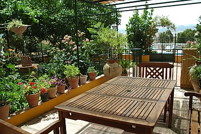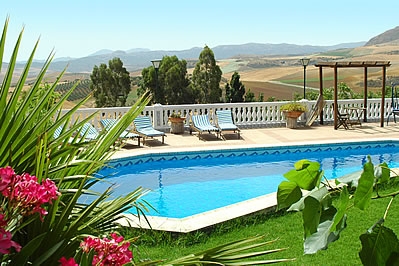 Villa Cañete is a beautiful Andalucian villa situated at 2,5 kilometres from Cañete La Real, a quaint little Spanish village. The fabulous town of Ronda (35 kms) is situated south of the village, a half hour drive away, whilst the beaches of the Marbella are only 45 minutes more. The cities of Seville, and Antequera are approximately one hour drive. Cuevas de Becerro is another nearby village, a 10 minute drive, where you can find some traditional bars and restaurants. The property can by easily reached in a bit more than an hour drive from Malaga airport of from Seville via Osuna. The outside areas of villa are spacious, very well maintained and give good privacy. From the veranda, steps lead down to the private pool (12 long, 3 to 5 mts wide; 1,60 mts - 2,20 mts deep) set in a lovely, lawned garden surrounded by lots of vegetation - sun loungers are provided. From here you have far reaching views on the surrounding landscape. Adjacent to the house you will find your favourite spot for an alfresco dinner: the typical patio is full of flowers and plants and provided with barbecue, dining table and chairs.