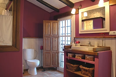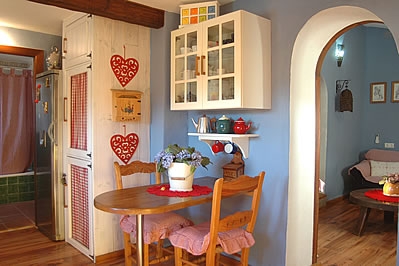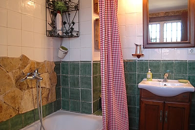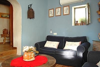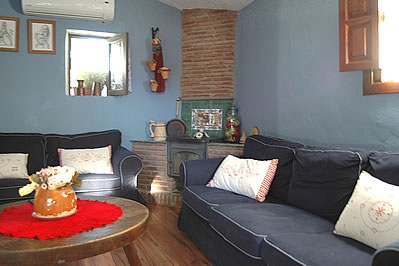 La propiedad ha sido construida en un estilo tradicional andaluz, con paredes gruesas, techos con decorativas vigas y suelos de madera. Hay un cómodo salón con dos sofás, una estufa de leña, aire acondicionado, TV vía satélite y reproductor de DVD. La cocina es espaciosa y está bien equipada con una placa de inducción de 4 fuegos, microondas, nevera, congelador, lavavajillas y un rincón para el desayuno. La cocina se comunica con una terraza que sirve de comedor. Un pasillo lleno de adornos tradicionales conduce a una bonita habitación de matrimonio y un cuarto de baño completo. En la planta alta, un pasillo amplio usado como un segundo dormitorio con literas lleva al tercer dormitorio con una cama de matrimonio, y un diseño romántico con un ventanal con vistas al jardín y al campo. Este dormitorio dispone de un televisor con pantalla plana y aire acondicionado. El cuarto dormitorio está situado en la planta baja, con su propia entrada independiente; decorado con gusto, ofrece un ambiente acogedor, y tiene un cuarto de ducha en suite con WC.
