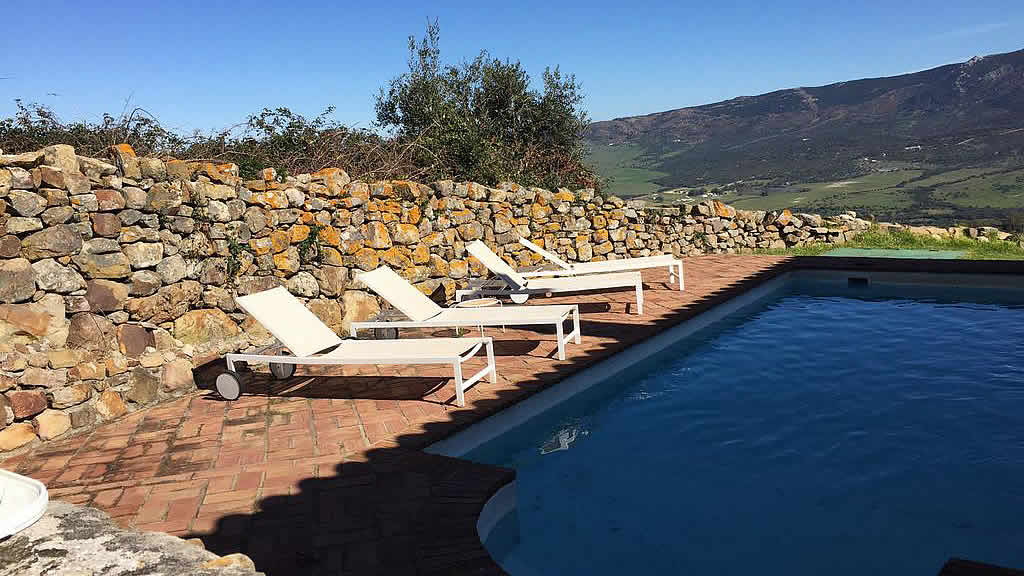 Casa 'San Miguel' es una casa con mucho estilo, propio de los cortijos Andaluces. Está situada dentro de una pequeña aldea de nombre Betis, en la falda de la montaña de San Bartolomé, que pertenece al término municipal de Tarifa. El sitio es privilegiado dentro del Parque Natural El Estrecho con preciosas vistas al la montaña. A tan sólo 5 minutos se encuentran 2 playas: la playa de Bolonia con su antiguo puerto romano y la playa de Las Dunas de Punta Paloma. En el jardín de cesped, el porche y zona de piscina la privacidad es garantizada por la muralla de piedra que cerca el jardín. La piscina de 8 por 4 metros esta situada al lado de la casa y realizado con ladrillos antiguos y cerámico en azul claro. El porche de la casa esta hecho con vigas de madera y ofrece magníficas vistas sobre la valle. Dispone de una mesa con 6 sillas de madera teca y una barbacoa móvil. Para llegar a la casa hay que seguir una carretera secundaria que enlaza la aldea de Betis con la nacional 340 de la cual los últimos 300 metros es un carril sin asfaltar. La ciudad de Tarifa se encuentra a 7 minutos en coche, el peñon de Gibraltar a 45 minutos. El aeropuerto de Jerez de la Frontera a 1 hora de Jerez y el aeropuerto de Málaga a 1 hora y media. Sevilla se encuentra a 2 horas.