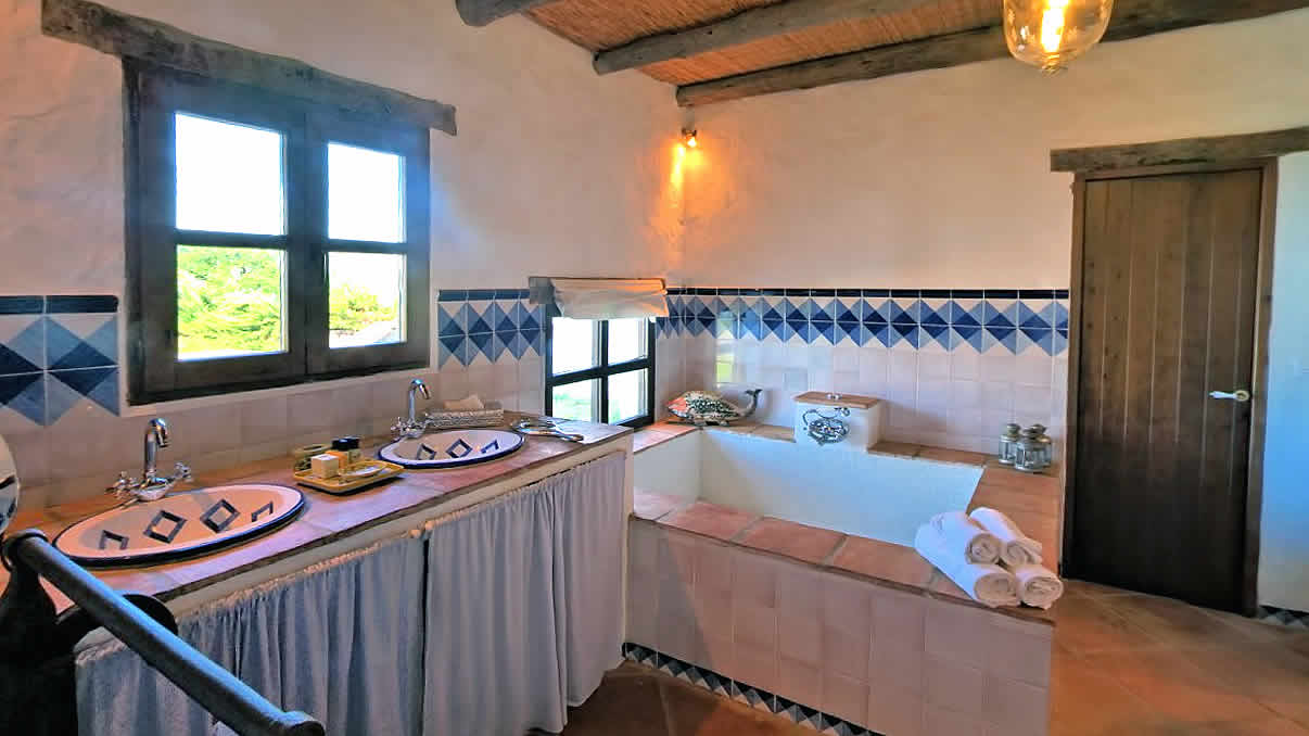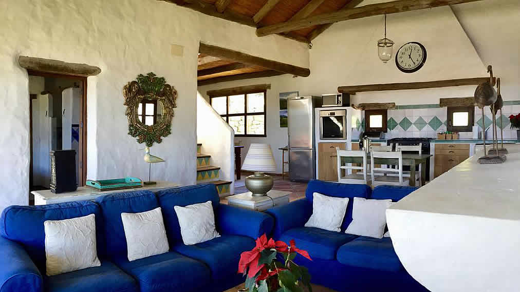 La casa es una de las casas rurales en Andalucía con mas estilo. Dispone un salon con techo de madera y caña y un comedor totalmente equipados: televisión, parabólica y equipo de música y cuenta con chimenea. La casa tienen mucha luz gracias a sus amplios ventanales. Dispone de 3 dormitorios con capacidad para 6 personas y vista hacia el exterior. Las ventanas son de madera y terminadas con cristales climalit. Los suelos están realizados en losetas de barro excepto el del dormitorio principal que está realizado en madera. Para su uso común, la casa dispone de un cuarto de baño de 20m2 realizado en materiales rústicos y cuenta con agua caliente central por gas. La cocina rústica es de obra con madera y azulejos y totalmente equipada con frigorífico con congelador, horno, microondas, lavavajillas y el menaje necesario para realizar todo tipo de comidas. La casa dispone de un pozo de agua propia.