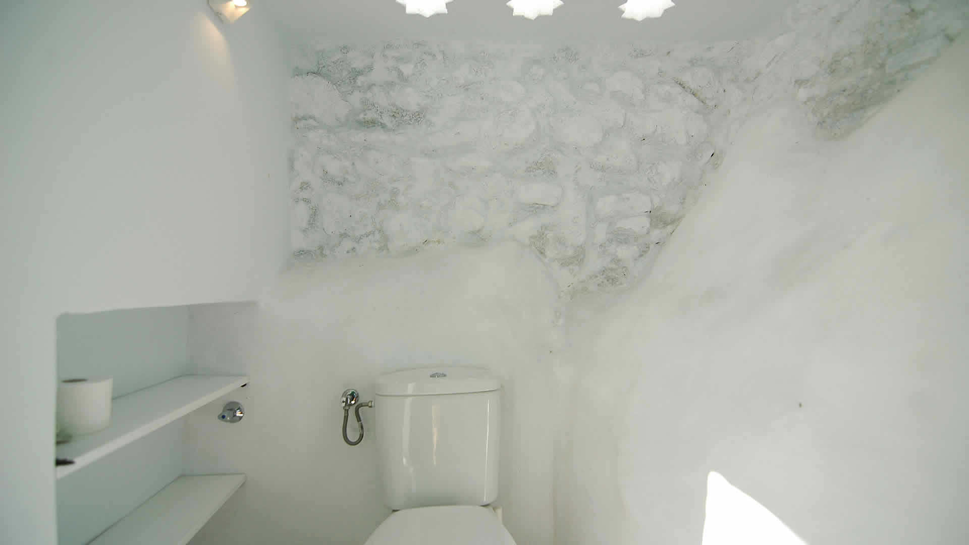 La entrada a la primera planta (nivel de calle) se abre a un amplio comedor/cocina con muebles de diseño, aunque los suelos de terracota y la chimenea tradicional no le harán olvidar que está en AndalucÃa (la chimenea ya no funciona, está concebida como elemento decorativo). La cocina está totalmente equipada con nevera/congelador, vitrocerámica de 4 fuegos, horno eléctrico, microondas, lavavajillas y lavadora. En esta planta, encontrará también un dormitorio con cama de matrimonio y un baño.Una escalera abierta y moderna conduce al salón de la planta baja, donde elementos contemporáneos se mezclan perfectamente con la pared tradicional de piedra natural y techos de esa época. El sofá marrón oscuro ofrece un contraste agradable a la vista frente a las paredes y techo blancos â incluso el televisor de pantalla plana es de color blanco. Un reproductor de DVD añade confortabilidad a la estancia. Un escritorio y una silla están a mano de los huéspedes que no hayan podido desengancharse del todo de sus compromisos. Puertas de jardÃn se abren a la piscina bajo una escalera. También hay un cuarto de ducha en esta planta con WC y lavabo.