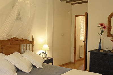 Alle Räume befinden sich im Erdgeschoss. Der Eingangshalle führt in ein Wohnzimmer mit offenem Kamin und Fenstertüren, die auf die Terrasse führen. Auch durch den modernen und offenen Küchen-/ Essbereich gelangt man auf die Terrasse. Der Küche sind ein Hauswirtschaftsraum sowie ein Vorratsraum angeschlossen. Das Haus umfasst zwei Doppelschlafzimmer, die beide über ein eigenes Badezimmer verfügen – eines ist mit Badewanne, das andere mit Dusche ausgestattet – sowie eine eigene Terrasse. Ein zusätzliches Doppelschlafzimmer und ein Doppelzimmer mit Einzelbetten haben Zugang zu der Gemeinschaftsterrasse. Diese beiden Schlafzimmer teilen sich ein Badezimmer mit einer kleinen Sitzbadewanne und Dusche. Zusätzliche Ausstattung: Satelliten-TV, Stereoanlage, Zentralheizung und Waschmaschine.