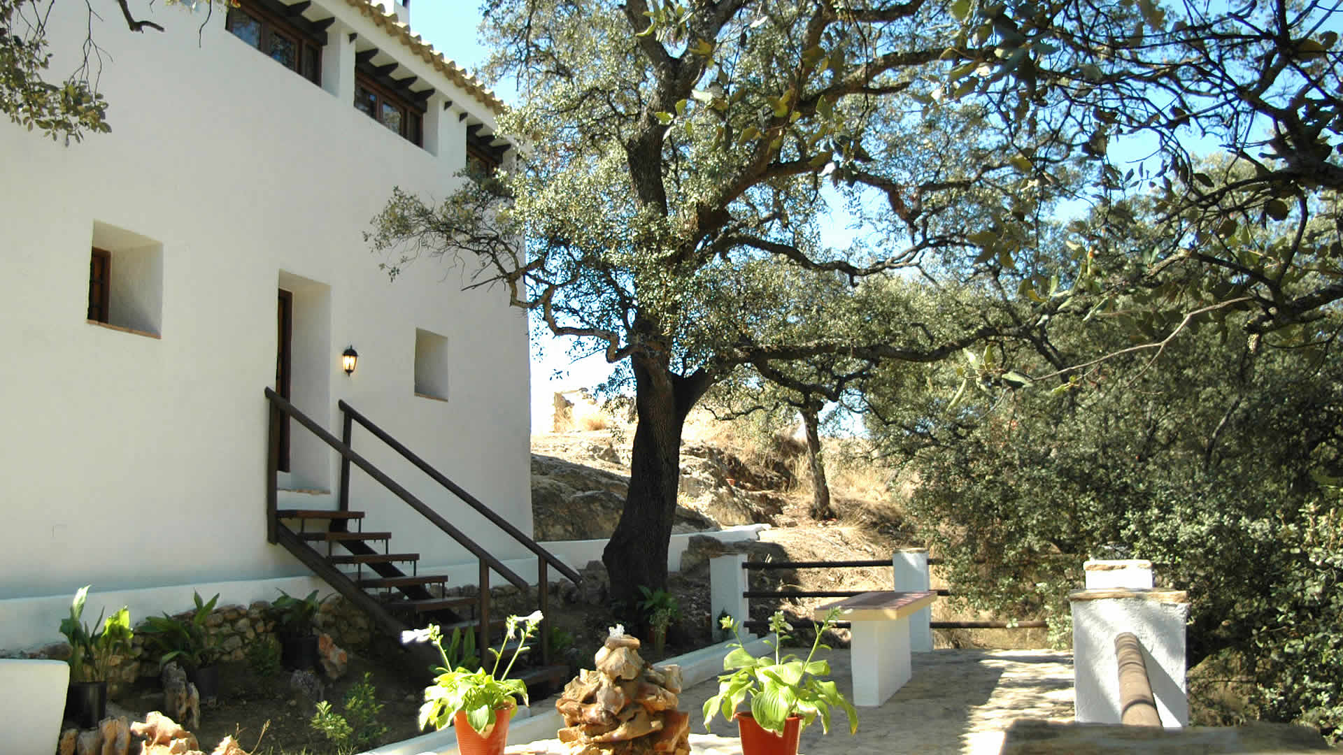 El cortijo se localiza a 4 km de Fuentes de Cesna que forma parte del Municipio de Algarinejo (Granada). El acceso se realiza por un camino rural de 300m, en buen estado. Es un zona de paisajes impresionantes, con montaña andaluza, cerros abruptos, barrancos profundos, arroyos y rÃos. Desde algunos puntos cercanos hay excepcionales vistas panorámicas que abarcan tres provincias andaluzas en el centro regional de AndalucÃa. La parte trasera del Cortijo está rodeada de un campo de grandes y singulares encinas. En el exterior se encuentra la piscina privada, de reciente construcción, por lo que le falta todavÃa algo de zona ajardinada. La casa tiene su parte correspondiente del patio y comparte una bonita y sombreada terraza exterior con ref. Granada 028b. Hay barbacoa.