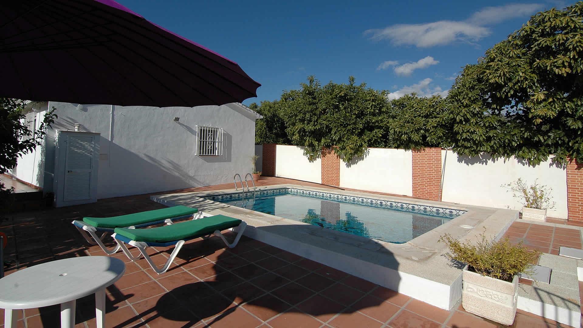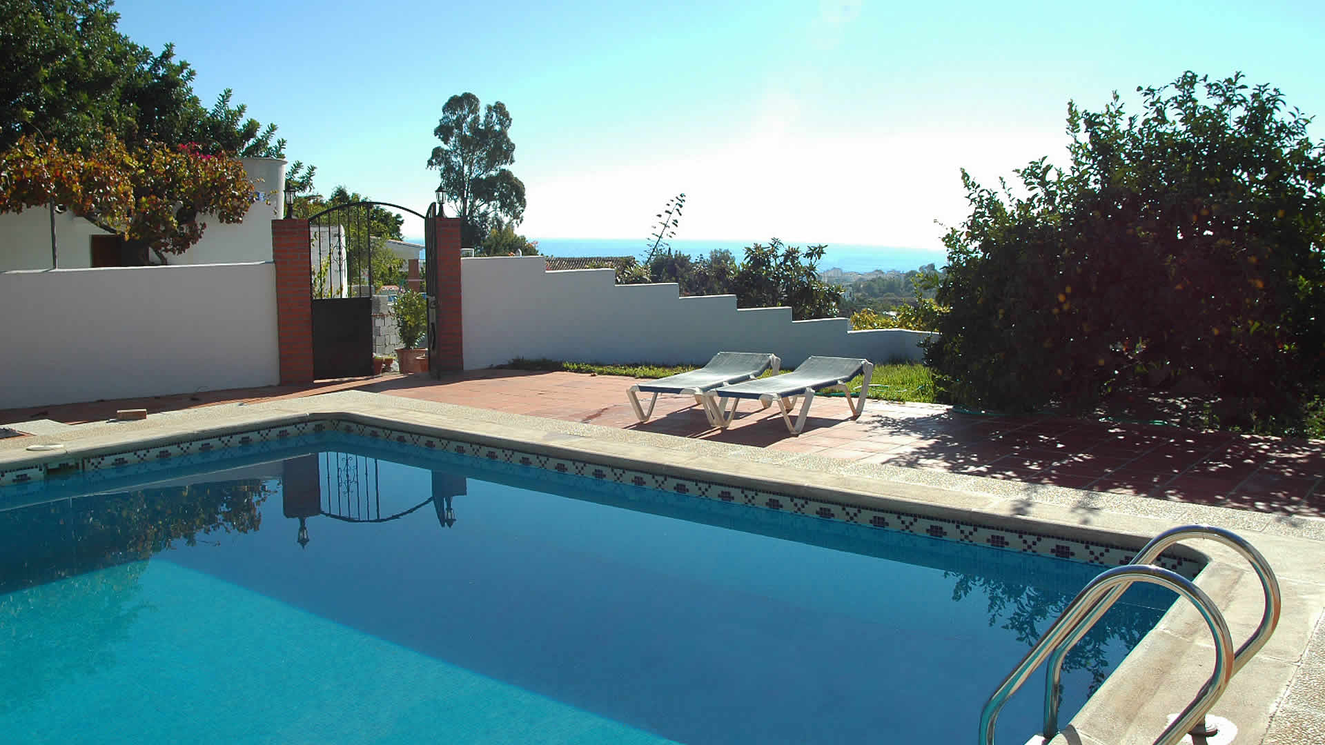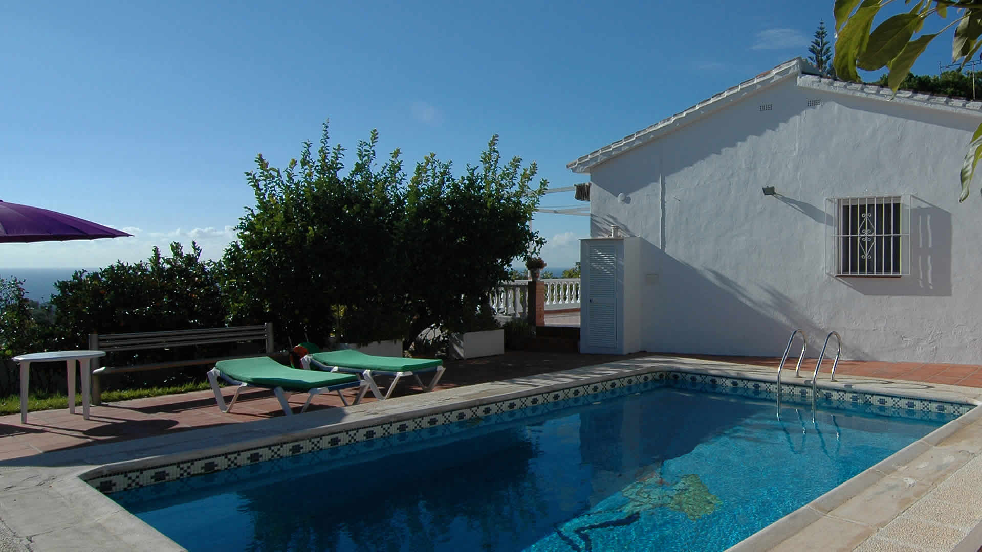 Esta villa está situada en la zona de Tablazos, a igual distancia de Nerja (3km) y Frigiliana, ambas a sólo 5 minutos en coche. Aquí disfrutará de lo mejor que le puede ofrecer el campo con los servicios de la ciudad y los placeres de la playa. La amplia terraza delantera es uno de sus mayores atractivos y ofrece impresionantes vistas sobre Nerja y el mar ─ es aquí donde disfrutará de sus comidas al aire libre (hay barbacoa). La piscina privada (7m x 4m ; 1,5m - 2m de profundidad) dispone de tumbonas y ofrece las mismas vistas. A la espalda de la casa, una entrada conduce a un huerto de aguacates con algún limonero donde los huéspedes pueden coger las frutas para su propio consumo. Desde esta casa, es fácil hacer una excursión a los bonitos pueblos blancos de la Axarquía, como por ejemplo Cómpeta, famoso por su miel de naranjo y sus vinos Moscatel. La ciudad de Málaga está a menos de una hora de distancia en coche y bien merece una visita, así como su Museo Picasso, visita obligada para los amantes del arte. La Alhambra con sus jardines de El Generalife en Granada y las cuevas de Nerja son otros atractivos turísticos de Andalucía de entre los muchos que hay para visitar.
