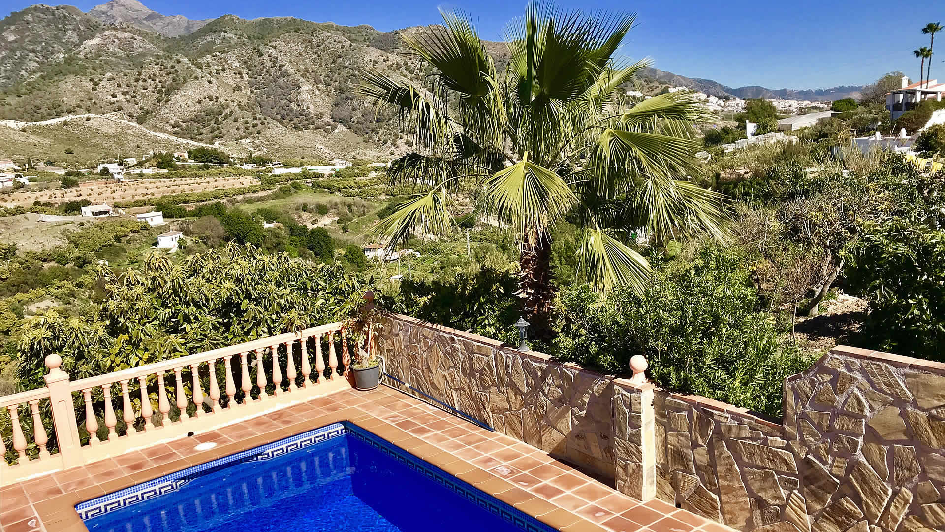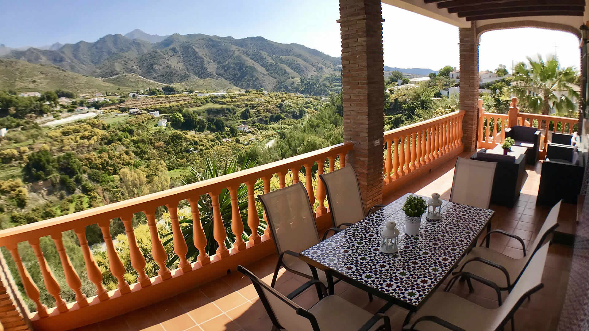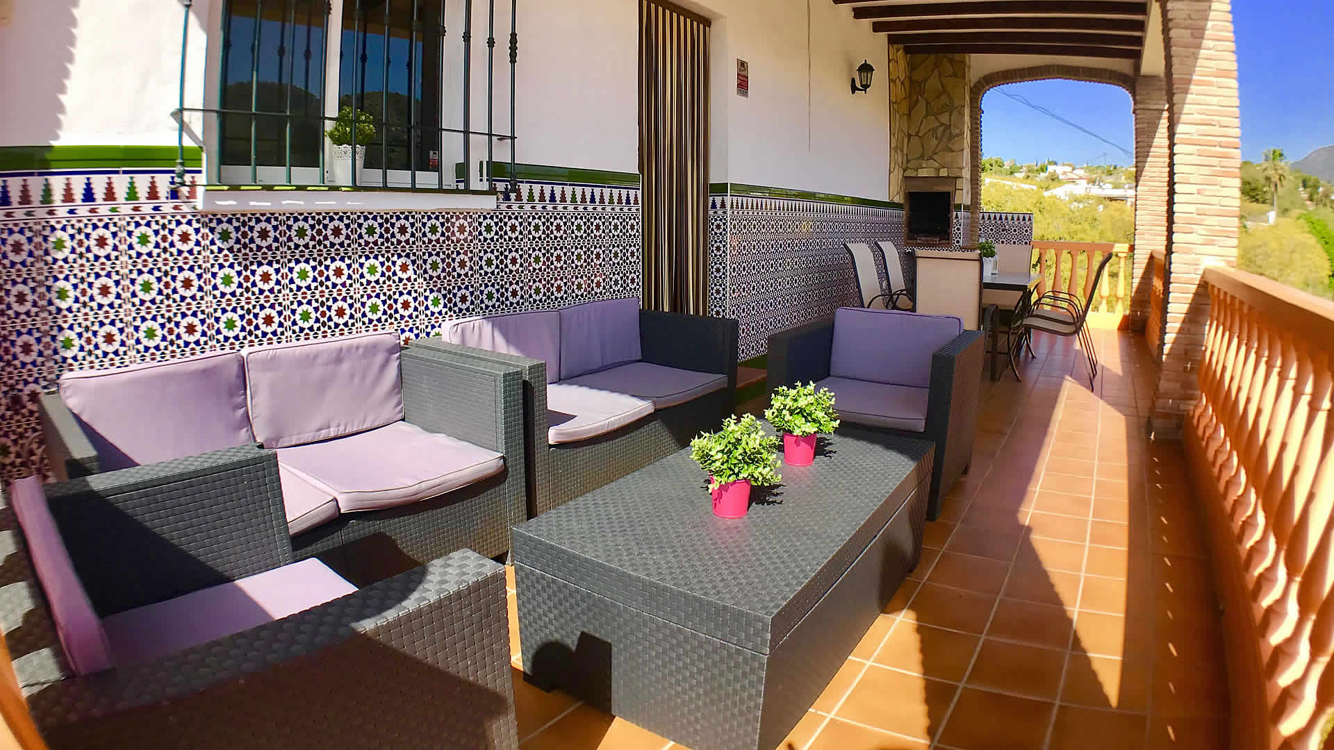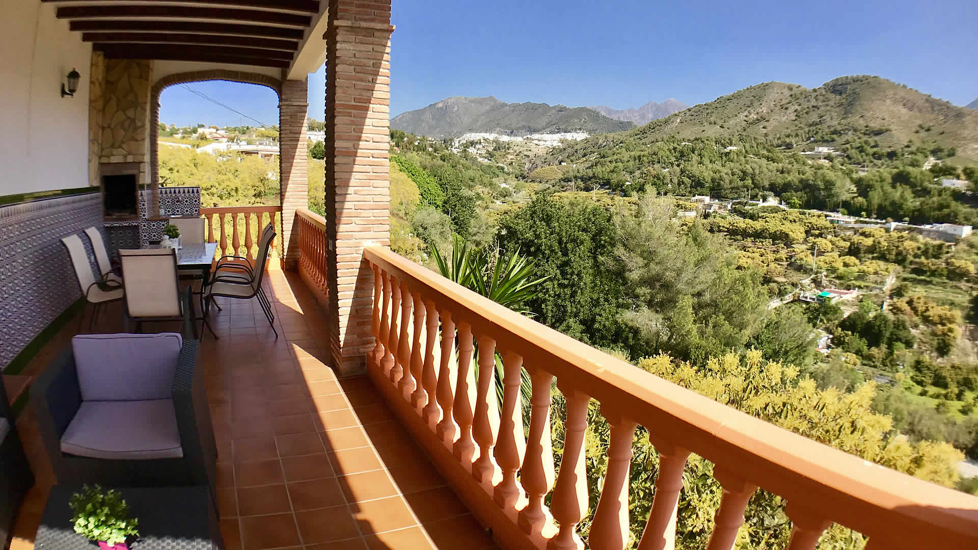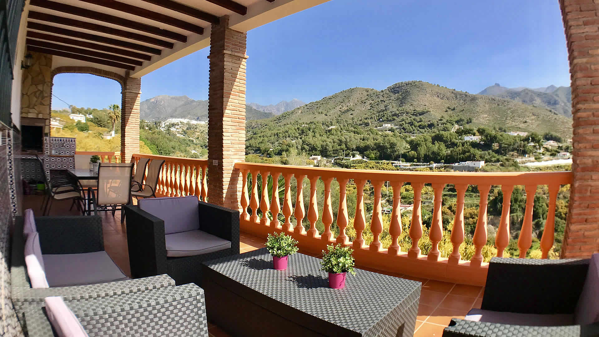 Esta villa es muy popular y se encuentra en el campo, aunque no muy lejos de Nerja. Disfrutará mucho del sombreado porche con vistas y la atractiva terraza más abajo, donde tomar el sol junto a la piscina privada. En el interior, es una casa confortable con mobilario rústico.