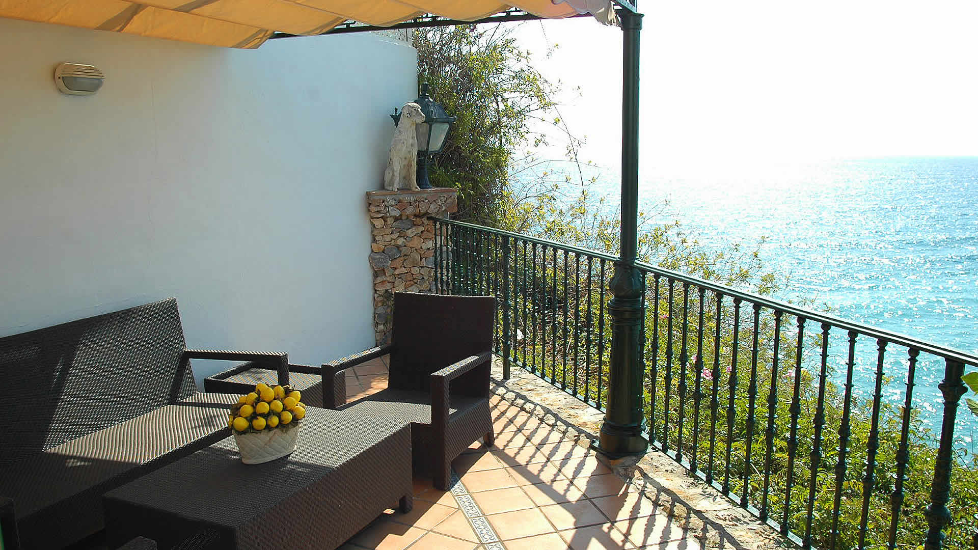 Aquí el coche también puede descansar... La casa se encuentra a tan solo dos minutos a pie de restaurantes, tiendas y bares de tapas, al igual que de maravillosas playas como Playa Carabeillo y Playa Carabeo. Aún así, la casa tiene su propio aparcamiento privado. En caso de que prefiera visitar los lugares más interesantes de Andalucia sin tener que conducir, puede concertar una excursión con guía o usar el transporte público en la estación de autobuses situada a ochocientos metros. La casa cuenta con una amplia terraza provista de tumbonas, una atractiva piscina privada y una pequeña piscina para sentarse y tomar un cocktail. Un gran toldo protege la zona de estar, convirtiéndola en un magnífico lugar donde disfrutar de una comida a la sombra. La casa también ofrece barbacoa y mobiliario de jardín. Bajando unos escalones, encontrará un jardín con césped a magníficas vistas a la playa abajo. Al final del jardín hay un rincón "chill-out" con confortables sillones de jardín y vistas al Mediterráneo y al Balcón de Europa.