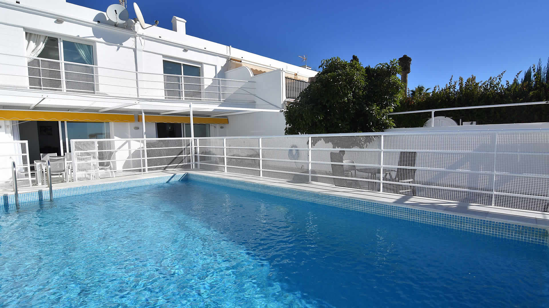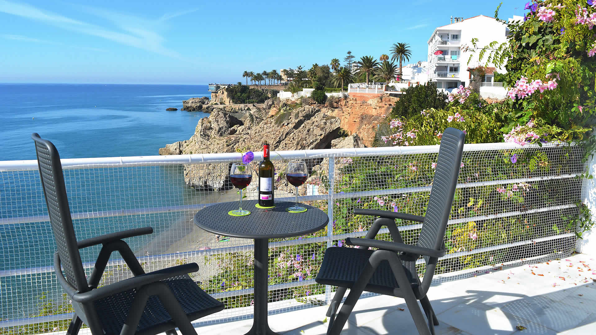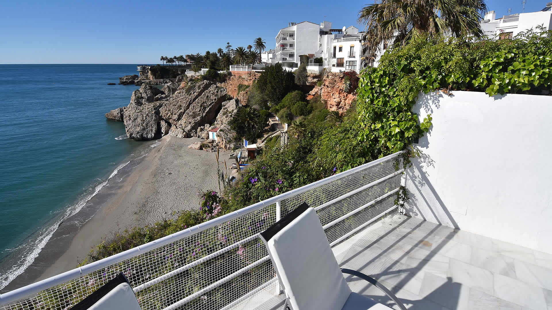 ImagÃnese salir por la puerta, girar a su izquierda, caminar ochenta metros y... ¡Tenderse en la playa! Otra buenÃsima alternativa es la de sentarse en una terraza y ¡pedir una sangrÃa bien frÃa! Todo es posible. Esta maravillosa casa está emplazada en la calle Carabeo, en el mismo corazón de Nerja. Disfrutará de su propia piscina privada con terraza soleada mientras goza de magnÃficas vistas de la playa y el Mediterráneo. En caso de que prefiera visitar los lugares más interesantes de AndalucÃa sin tener que conducir, puede concertar una excursión con guÃa o usar el transporte público en la estación de autobuses situada a 800 m. La casa cuenta con una amplia terraza provista de tumbonas y una atractiva piscina privada (7m x 3.7m). Un gran toldo protege la zona de estar, convirtiéndola en un magnÃfico lugar donde disfrutar de una comida a la sombra. La casa también ofrece barbacoa de gas y mobiliario de jardÃn.Para familias con niños, nos es grato informarle de que la piscina privada está vallada y que también hay una piscina compartida donde los niños podrán hacer nuevos amigos. En la primera planta tenemos otra terraza soleada con vistas al mar â esta terraza es accesible a través de dos dormitorios dobles. Notas: * El Ayuntamiento de Nerja tiene la intención de cortar la Calle Carabeo con un bolardo. En este momento desconocemos si dicha calle será transitable para los húespedes que tienen allà una plaza de parking a su disposición, ya que existe falta de información por parte del Ayuntamiento. Se intentará conseguir que éste facilite el acceso pero es pronto aún para saberlo. En caso de que finalmente no se pueda acceder al parking de la casa, la propiedad no se puede hacer responsable. Como opción, tiene la posibilidad de aparcar su coche en el parking público "Parking Carabeo", un espacio muy grande justo a la espalda de Calle Carabeo, a 3 minutos andando. Hay un precio especial para 7 dÃas de 55 euros (tarifa actual en el momento presente 20/03/19).* Durante la segunda semana de octubre y con una duración de aproximadamente 4-5 dÃas, tiene lugar la Feria de Nerja. El recinto ferial en el centro de Nerja se llena de casetas donde mujeres y hombres se visten con el tradicional traje flamenco, se pasean a caballo, bailan sevillanas, beben vino de Jerez o manzanilla y comen tapas. Por lo tanto, éste es un evento atractivo, pero también tiene sus consecuencias que pueden no ser tan atractivas: El aparcamiento privado junto a la casa no estará disponible desde unos dÃas antes de su celebración pues la calle Carabeo se cierra al tráfico. Si usted trae un coche, puede tratar de encontrar aparcamiento en los alrededores o bien podemos ofrecerle una plaza de parking gratuita en los apartamentos Marina Turquesa (a 1,5 km de la casa). Por otro lado, es posible que sufra molestias por el ruido de la feria (la música, etc.). Estimamos que esto no le afectará en gran medida ya que la casa se encuentra a una distancia prudente de la zona, pero no estamos en situación de poder garantizarlo.