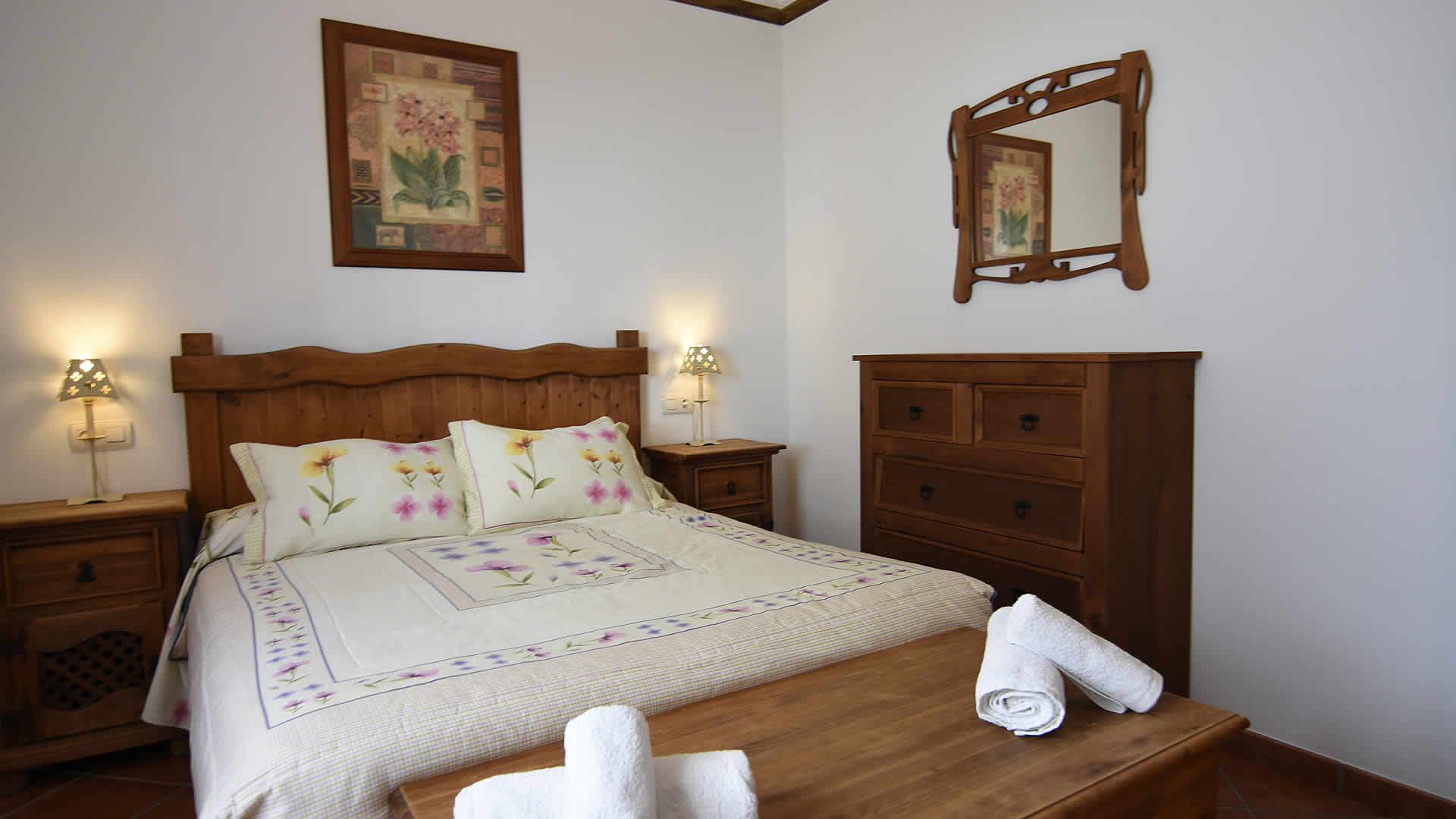 Con todas las estancias en una planta, la casa ofrece un interior con mobiliario de calidad. Cómodo salón con decoración en estilo rústico, chimenea, mesa comedor, 2 sofás, mesita y televisor grande con recepción por satélite. La cocina es el sueño de cualquier chef, con vitroceramica, horno, microondas, frigorífico, lavavajillas y lavadora. Los dormitorios ofrecen espacio a 6 personas: el dormitorio principal dispone de cama de matrimonio, los otros 2 dormitorios tienen 2 camas individuales cada uno. Hay 2 baños equipados con wc, bañera con ducha, bidé y lavabo. Uno de los baños tiene jacuzzi. Dispone de aire acondicionado/calefacción en toda la casa, además de caja fuerte y conexión a internet WiFi (gratuita).