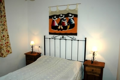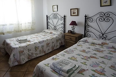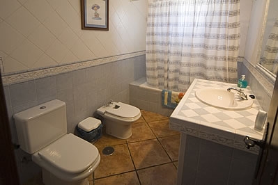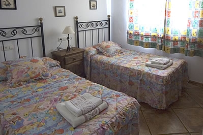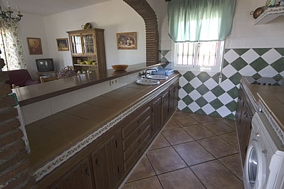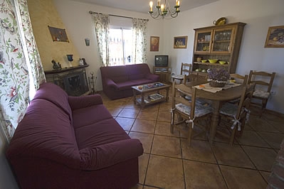 Todas las estancias en la planta baja. Su interior es muy confortable, cuidado y decorado en estilo Andaluz. El salón dispone de mesa comedor, sofá, dos butacas, chimenea y tv por satélite. La cocina semi-abierta está equipada con vitroceramica, microondas, frigorífico y lavadora. Los 3 dormitorios son cuidados y ofrecen capacidad para 6 personas: el dormitorio principal dispone de cama de matrimonio y los otros 2 dormitorios tienen 2 camas individuales cada uno. Hay dos baños completos en la vivienda, uno con placa ducha, otro bañera con ducha.