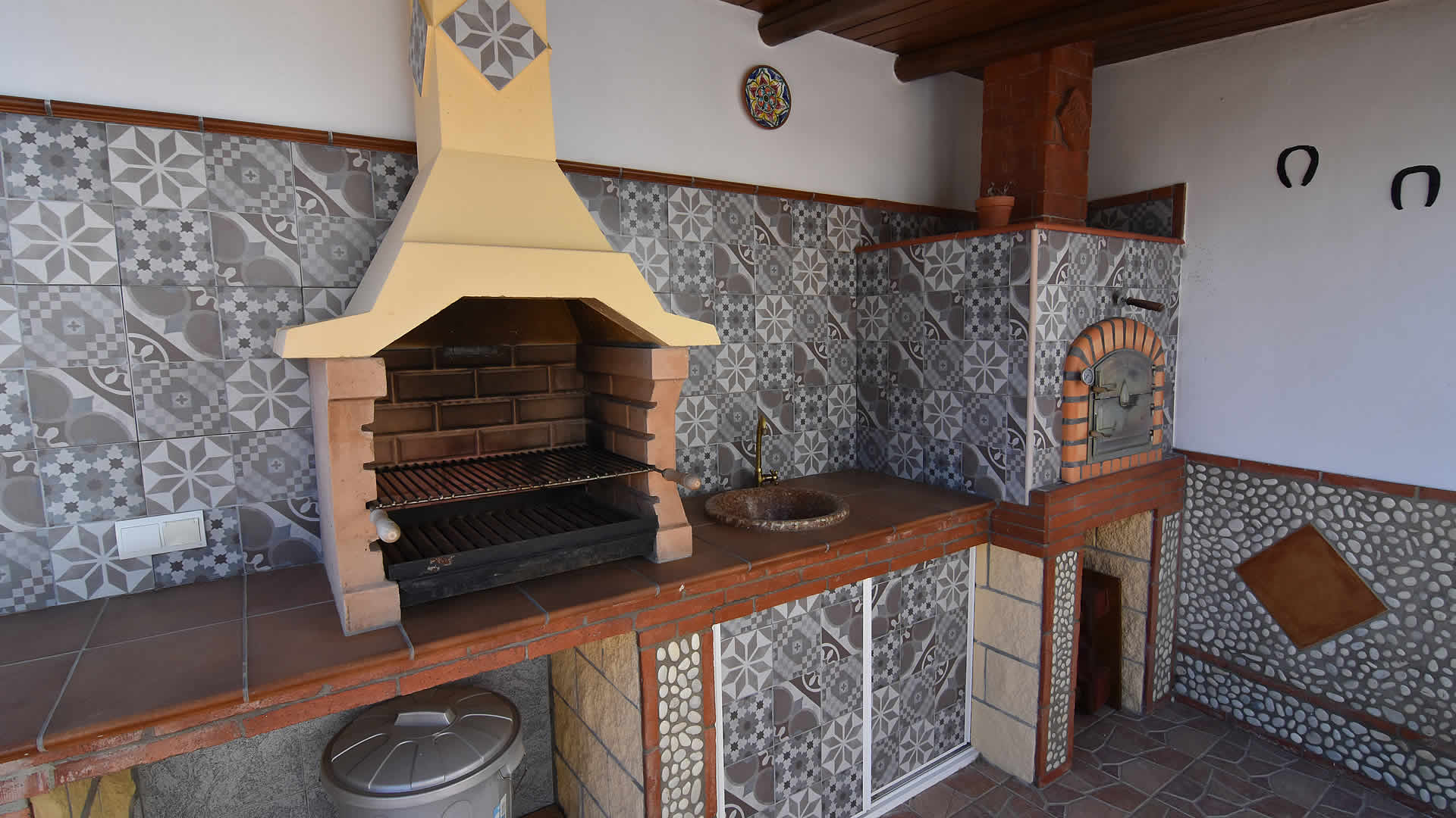 La piscina privada (7,3m x 3,5m; 1,85 m de profundidad máxima) está rodeada por una preciosa terraza soleada que cuenta con tumbonas y sombrillas. También hay una zona de barbacoa a la sombra con fregadero y acabado natural. En la parte delantera de la villa hay un porche sombreado con una segunda área de barbacoa, para que pueda elegir dónde cenar, dependiendo del viento y el sol.